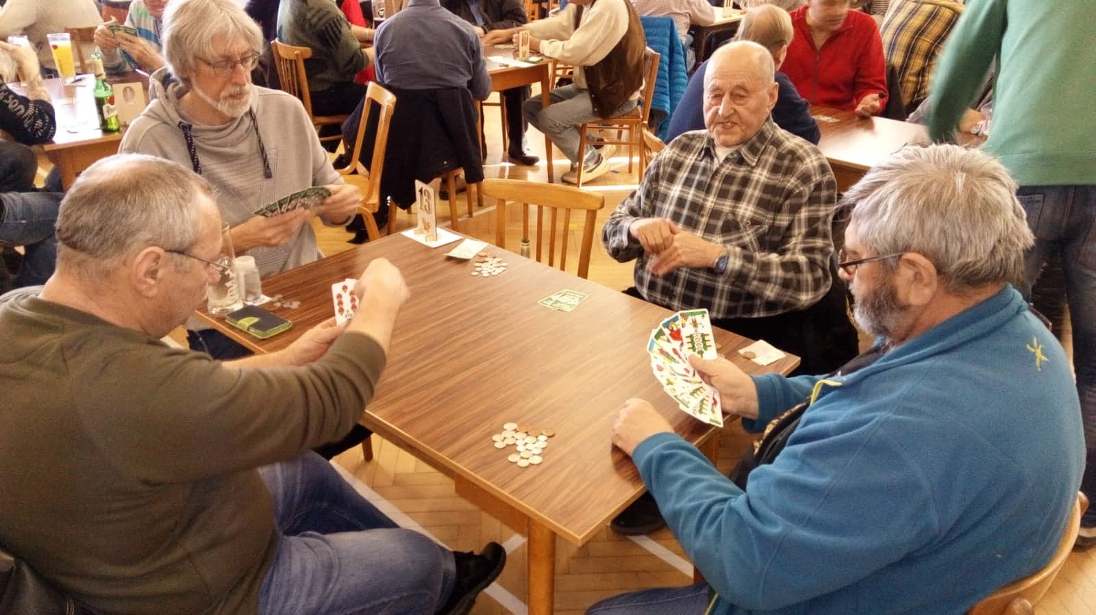 V Sokolovně Křimice v Plzni se odehrál první turnaj kategorie Major v licitovaném mariáši letošní sezóny. Sešlo se několik desítek borců, aby si to rozdali nejen o prestiž a ligové body, ale také o krásné poháry určené těm nejlepším. I když se to možná na první pohled nezdá, tato hra má své neodolatelné kouzlo.