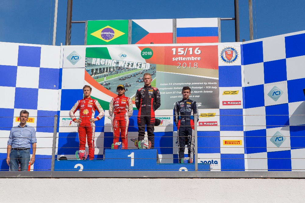 Vyvrcholení italské Formule 4 se chystá na 26.-28. října na okruh Mugello a v žádném případě není vůbec nic rozhodnuto. Dokonce i Petr Ptáček junior se při slibné konstelaci hvězd může reálně dostat v konečném účtování mezi první trojici. Ale bude to mít ze čtvrté příčky hodně těžké. Mimo jiné i proto, že uplynulý víkend byl v naprosté režii Olliho Caldwella. Britský pilot si připsal tři vítězství (za každé 25 bodů) a rázem se dostal do boje o titul. Ze třetího místa ztrácí devětadvacet bodů na druhého Enza Fittipaldiho, dalších devět bodů má k dobru průběžně vedoucí Leonardo Lorandi. Petrův stájový kolega tak nemá zdaleka nic jistého a v říjnu se čeká souboj na ostří nože.