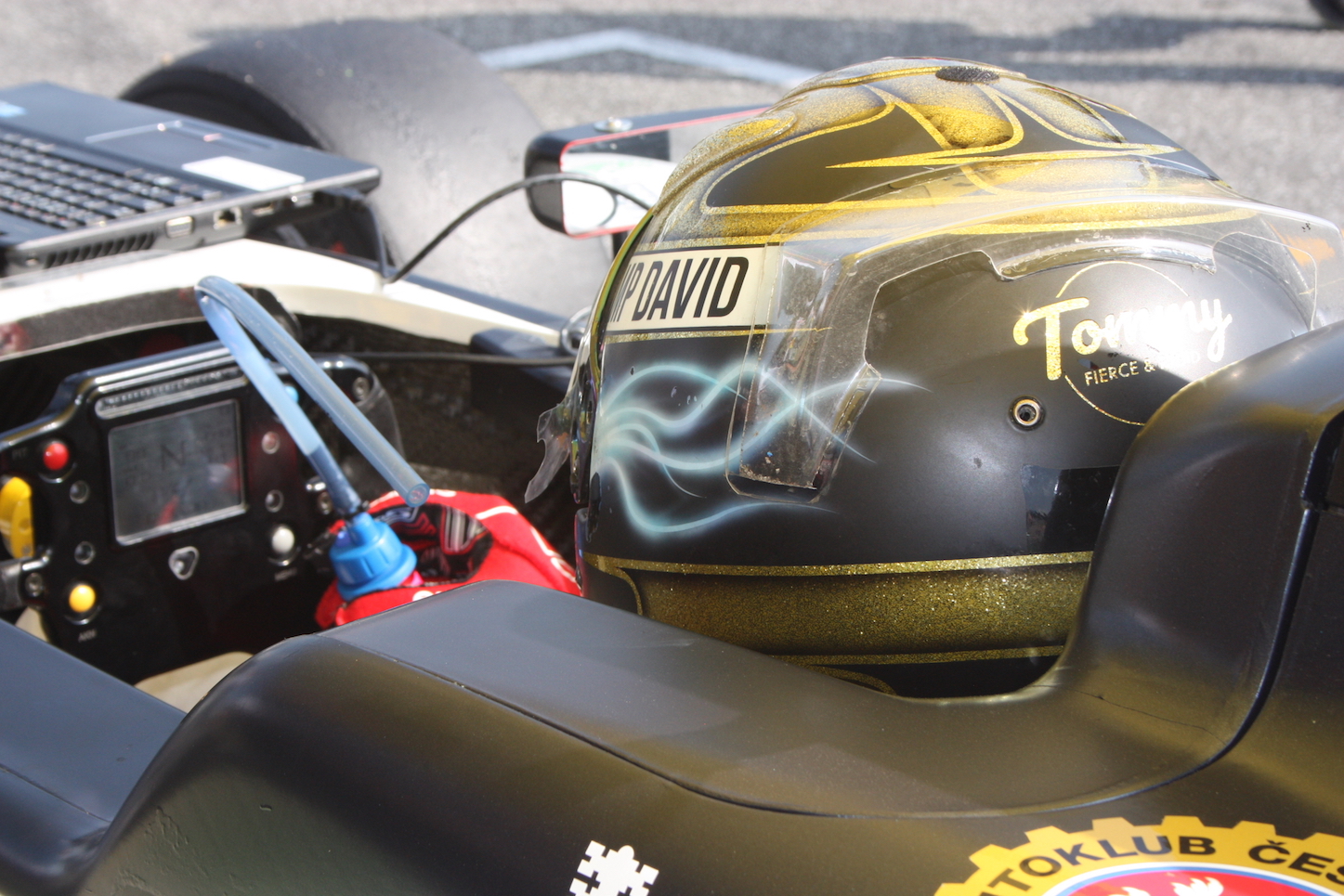 Můj velký idol Sebastian Vettel několikrát startoval s podobně řešeným designem. Ten můj jsem od toho odvodil.